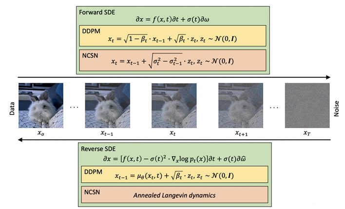 在SDE中,DDPM的采样方法称之为祖先采样,即利用前一次采样结果的分布数据来生成这一次的采样结果