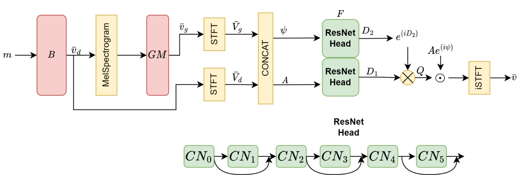 传统的确定性语音分离模型存在理论极限值,但生成模型的介入或许可以打破这一极限。使用一个预训练的分离模型(SepFormer)和一个预训练的扩散模型(DiffWave),再自行训练一个简单神经网络用于生成组合系数,在频域进行线性组合即可得到高质量的分离后语音。通过采用预训练的模型,大大减少了训练难度。同时文中尝试用GAN代替扩散模型,效果不太行。结果证明,该方法打破了确定性模型进行语音分离的理论上界,展示出了扩散模型的强大潜力。
